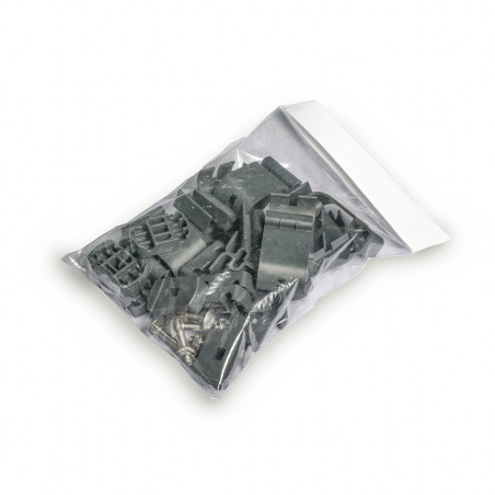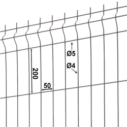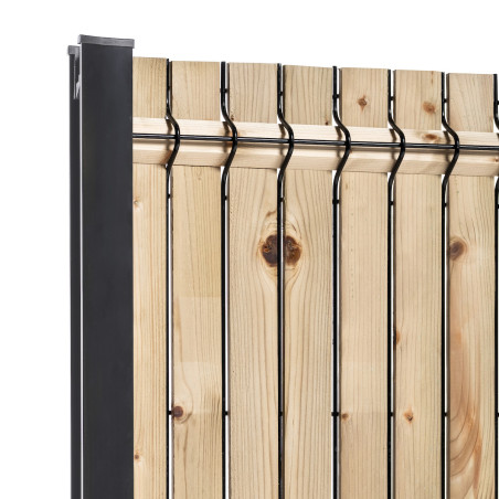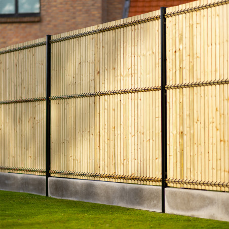 - 8 panneaux rigides fil Ø4/5gris 7016 H1m73, 8 plaques soubassement béton droite H 25cm, 9 poteaux renforcés gris 7016 H2m50, 2 sachets de fixations; 8 kits d'occultation lattes bois