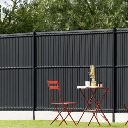 - 8 panneaux rigides fil Ø4/5gris 7016 H1m73, 8 plaques soubassement béton droite H 25cm, 9 poteaux renforcés gris 7016 H2m50, 2 sachets de fixations, 8 kits d'occultation lattes PVC